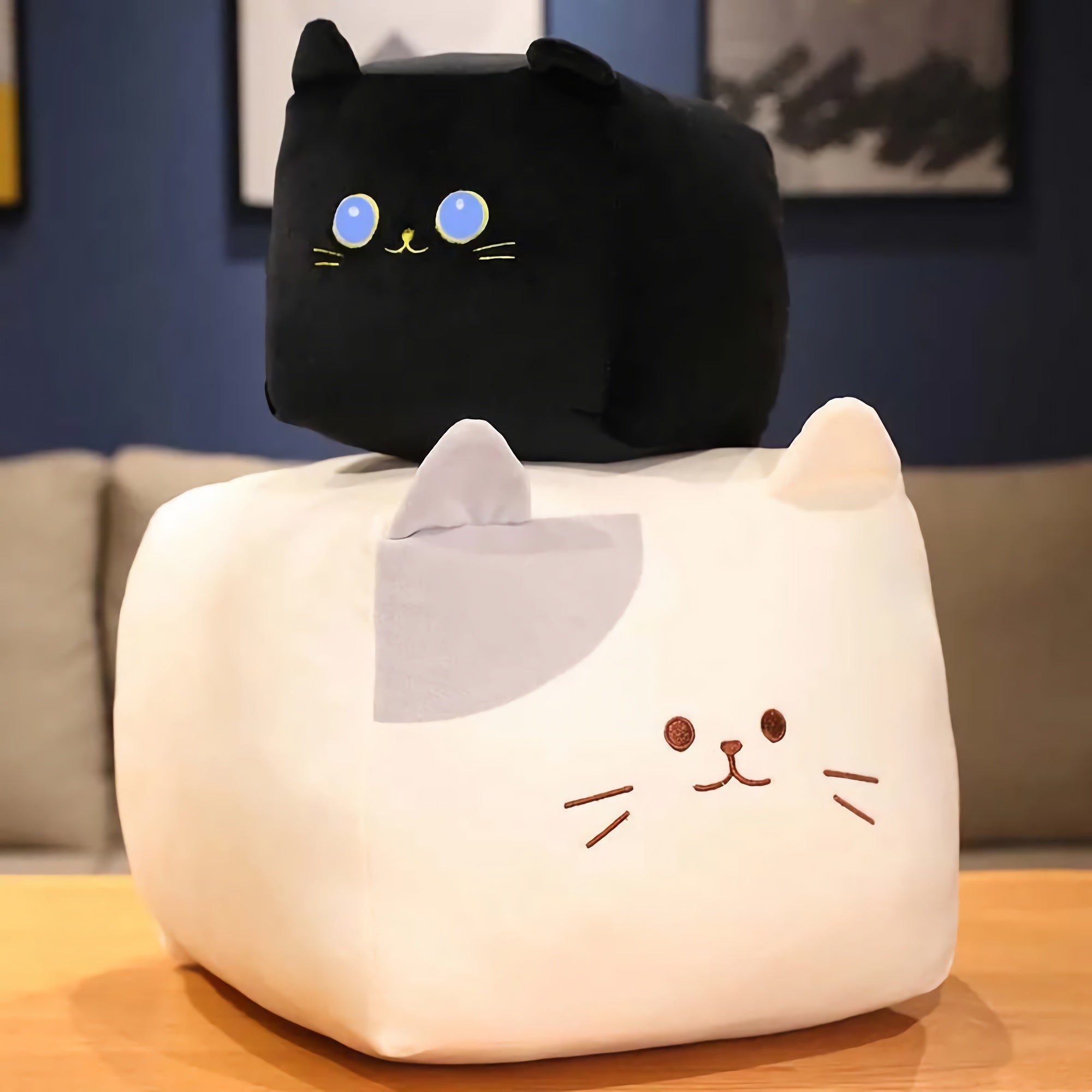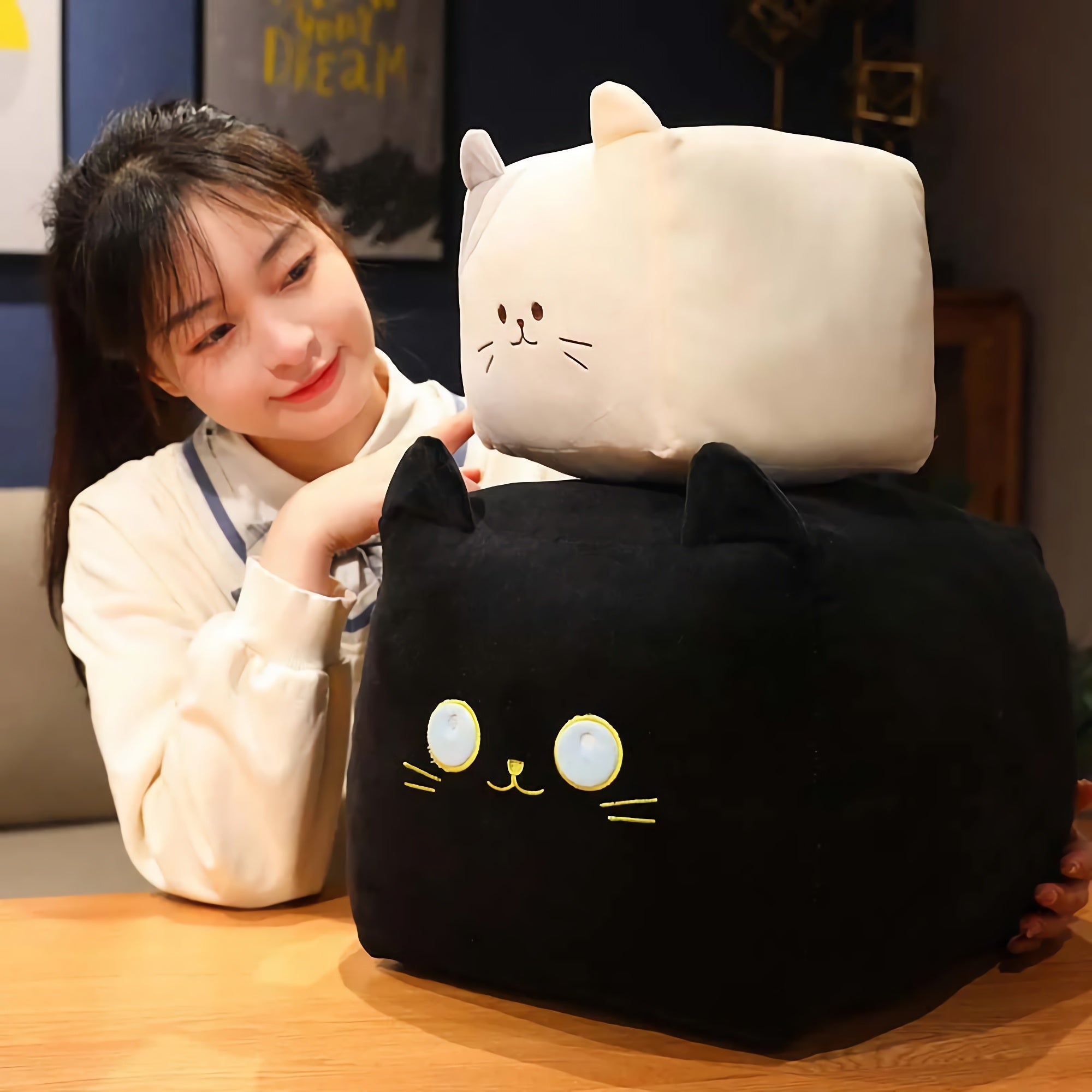 🐱 Meet the Chonk Cube Cats, the most adorable plush cushions shaped like perfect little cubes! Whether you're a cat lover, a collector of cute things, or just looking for a cozy new pillow, these squishy feline friends are here to bring joy and comfort to your space. Available in sleek black and soft white with embroidered kawaii expressions, these cube-shaped cats are as huggable as they are stackable!