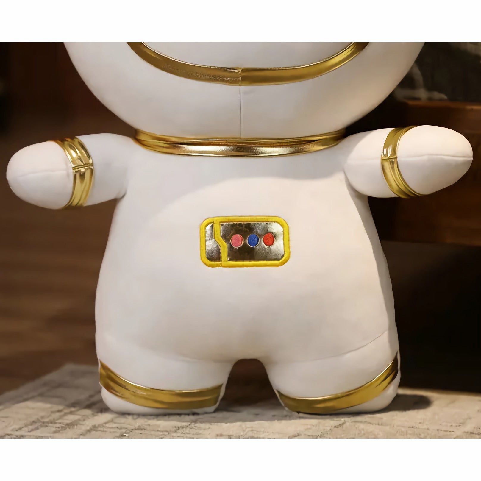 🌙 Galactic Style - Features a glossy gold-trim space helmet and suit details that shine with every squeeze.