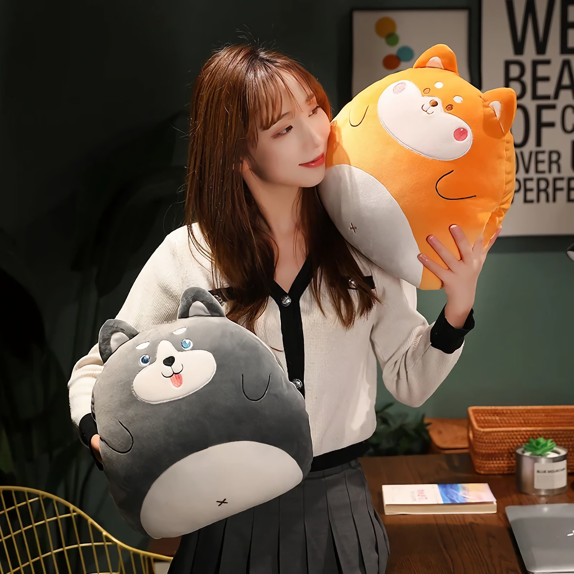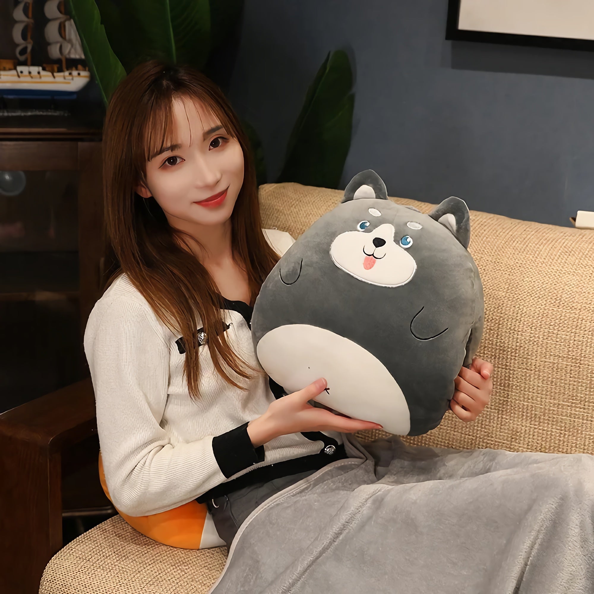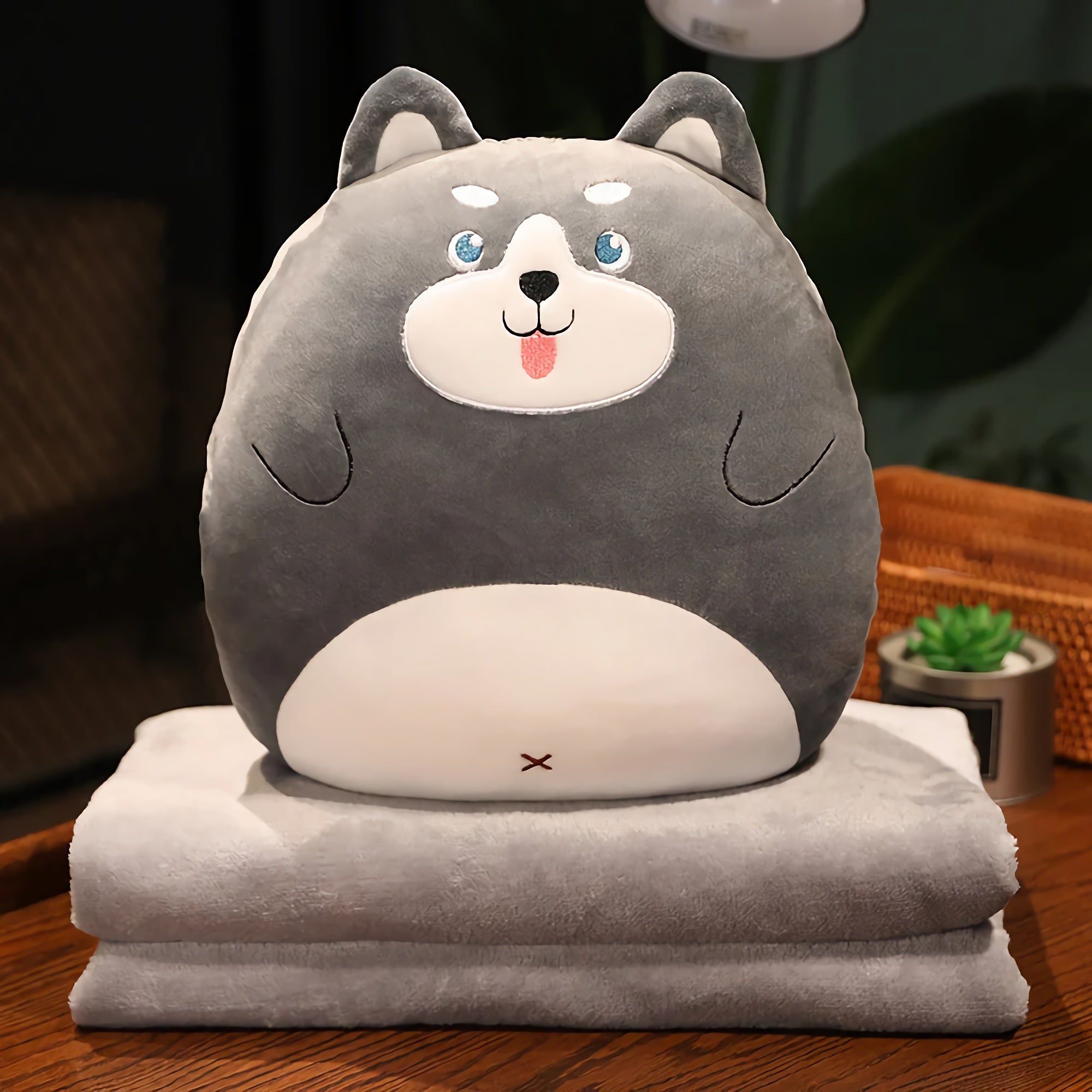 🐾 Meet the Chubby Critter Cuddle Set! This ultra-soft, round plushie is more than just an adorable face - it’s a 3-in-1 comfort essential! Use it as a pillow, unzip it for a warm, cozy blanket, and slide your hands inside to warm your hands for extra toasty snuggles. Whether you're lounging at home, working at your desk, or need a travel companion, these fluffy animal buddies are here to keep you warm and comfy.