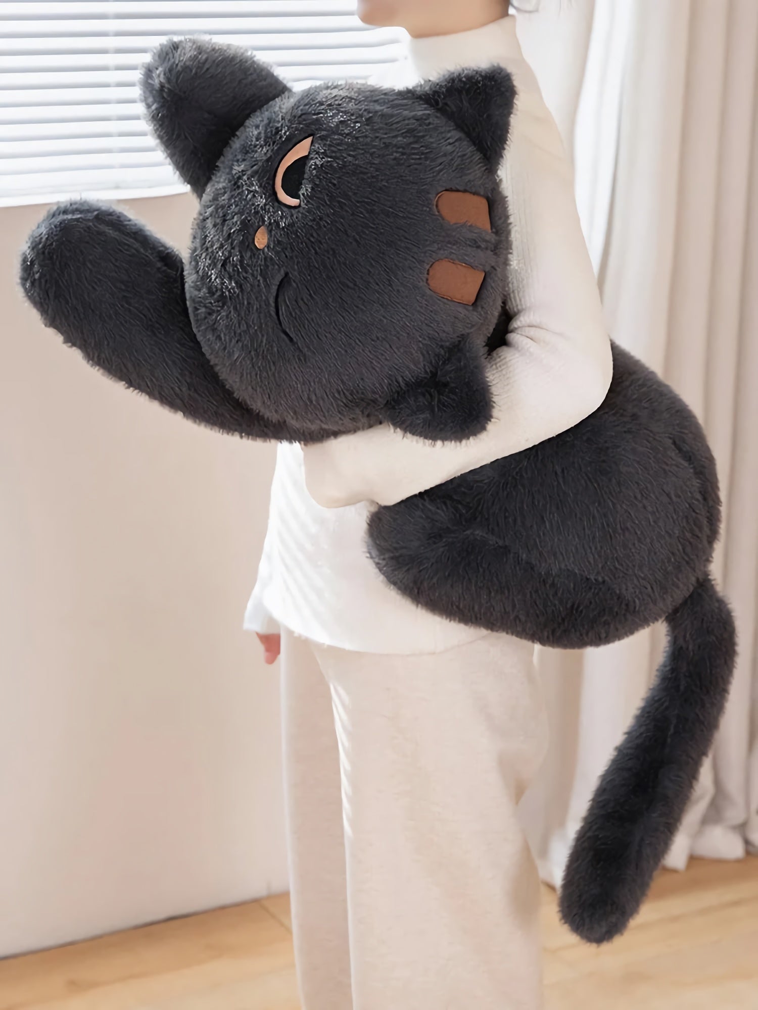 Crafted with premium soft plush fabric and filled with high-quality PP cotton, the Black & Grey Winking & Sleeping Cat Plush offers cloudlike support for side sleeping, lumbar relief, and relaxation. Its elongated silhouette makes it a perfect kawaii body pillow for hugging while watching TV, gaming, or unwinding after a long day. Lightweight and portable, it is easy to carry from room to room for on-demand comfort.