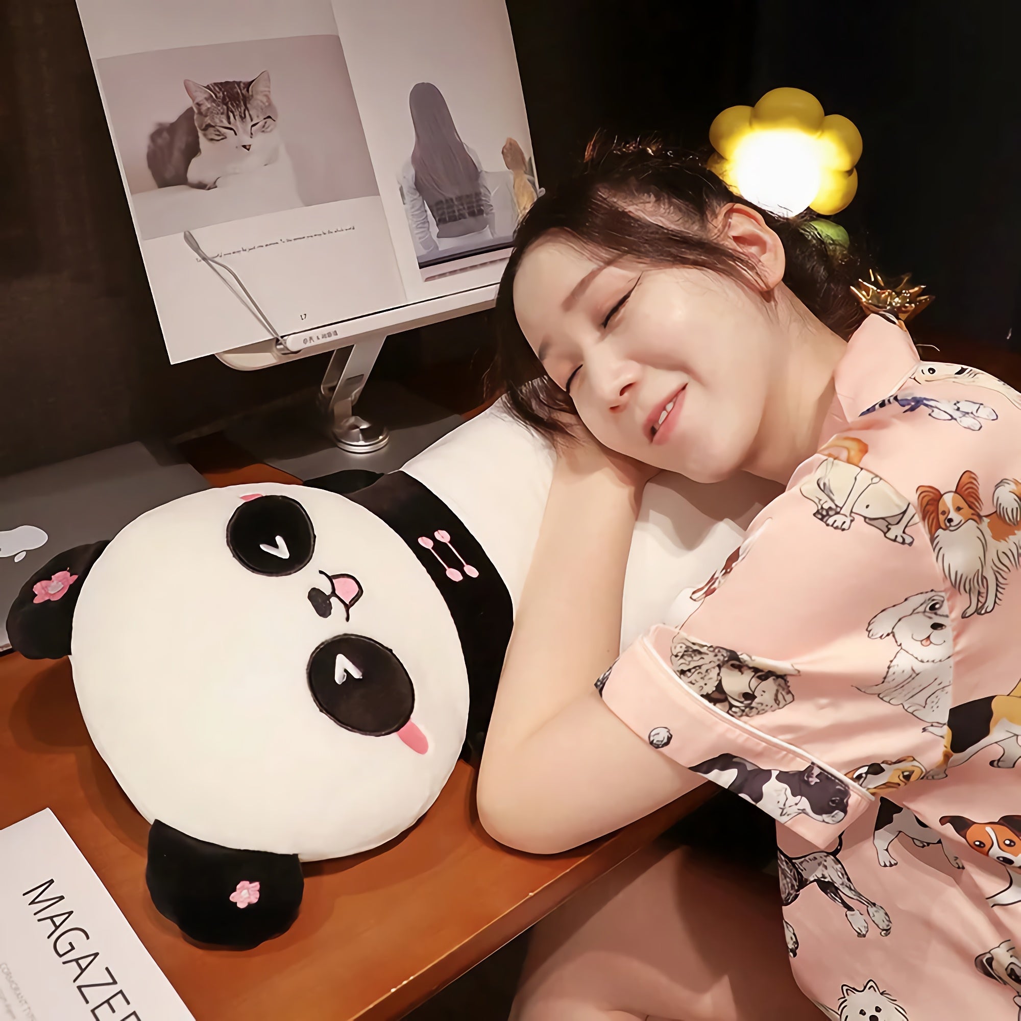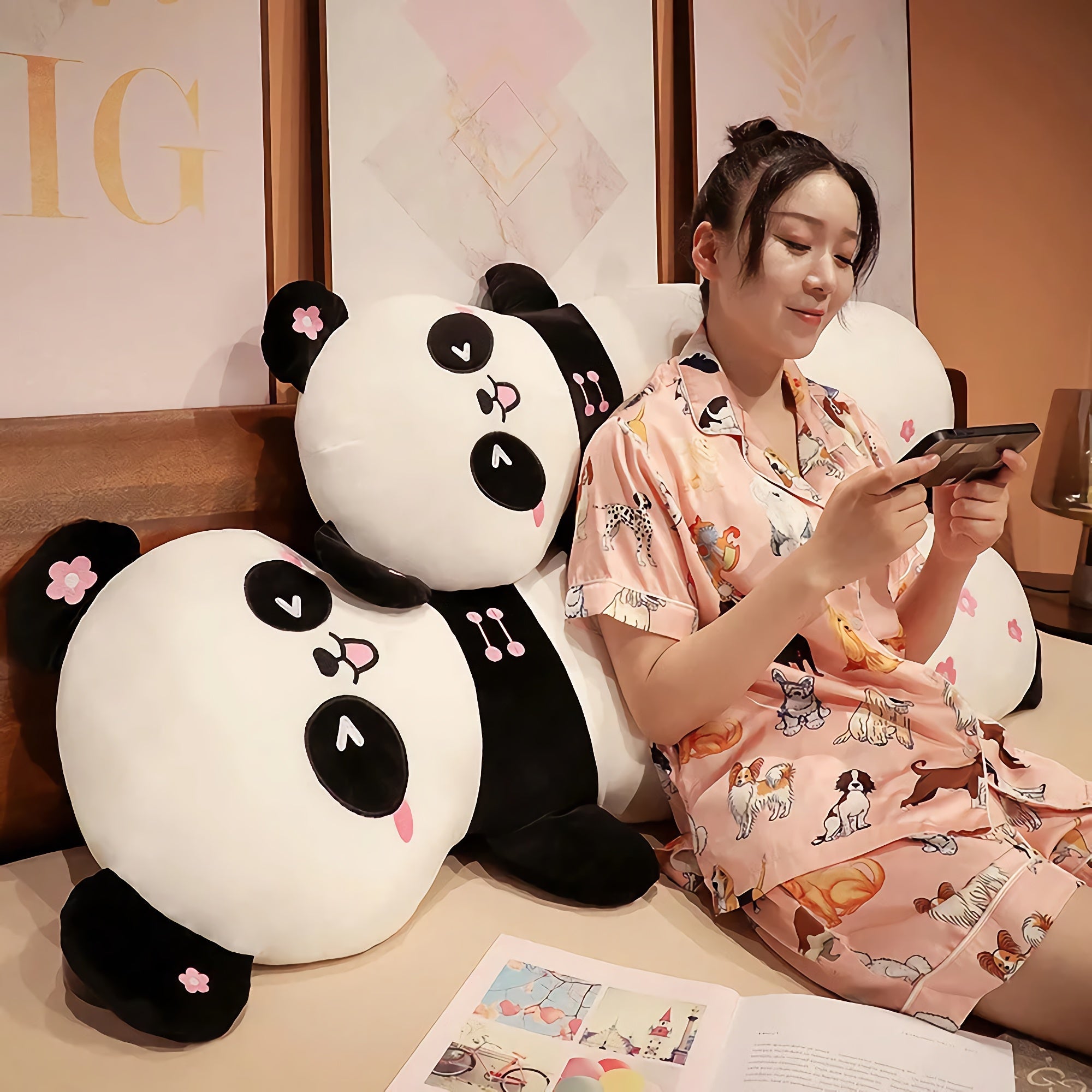 ๐ Available in three sizes (70cm, 100cm, 130cm), this giant panda plush bolster is great for hugging, lounging, and decorating your bed or couch. Choose from two styles: a sweet blushing panda with floral accents or a calm panda with a bamboo detail!