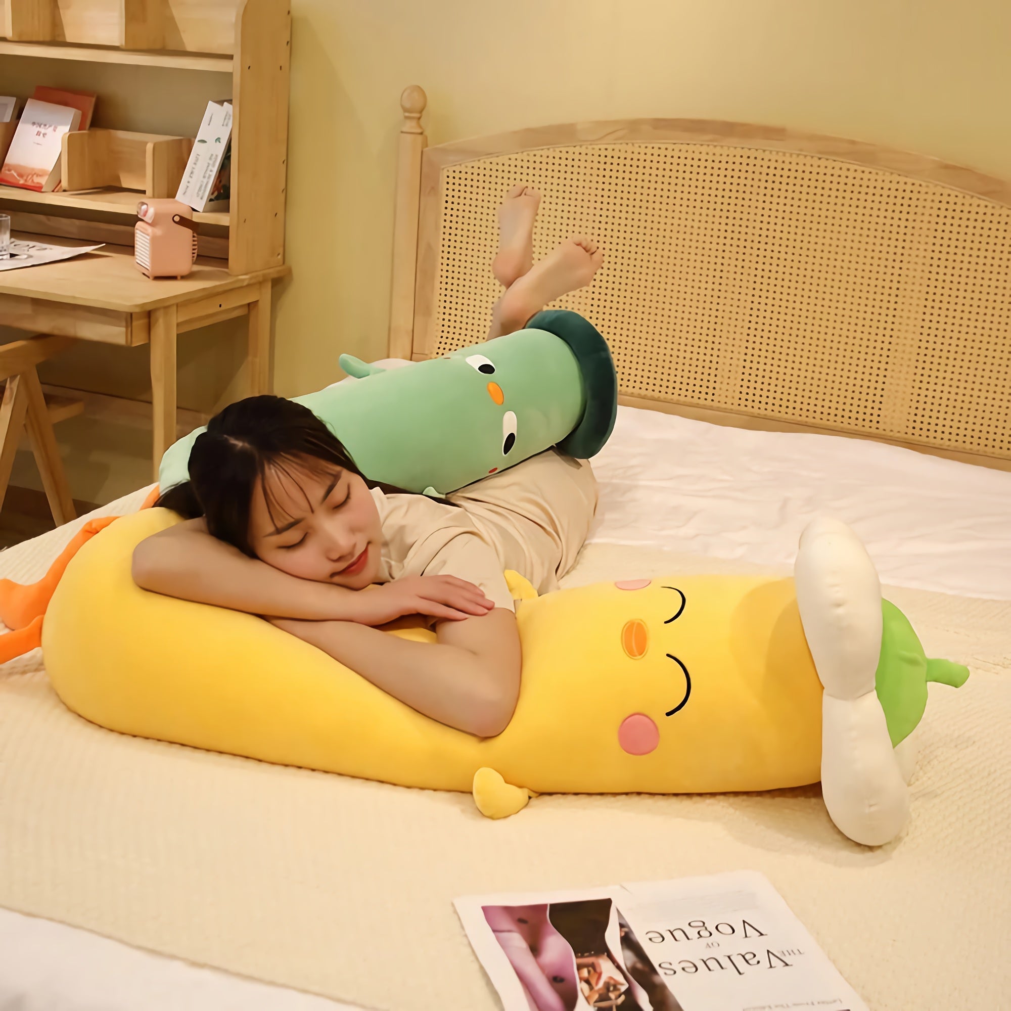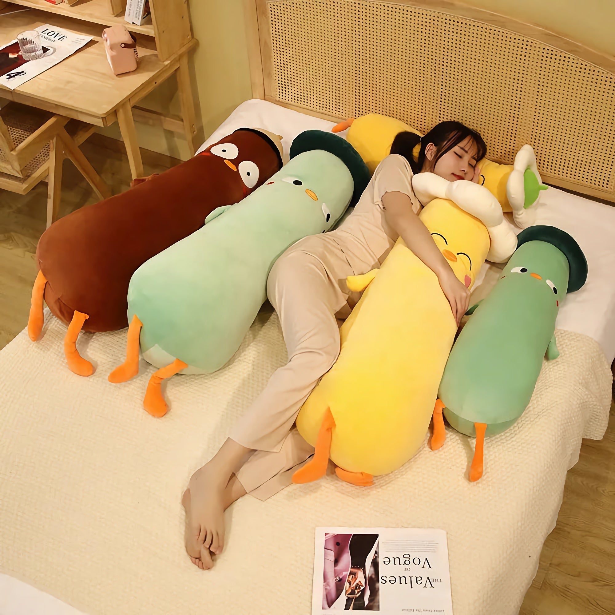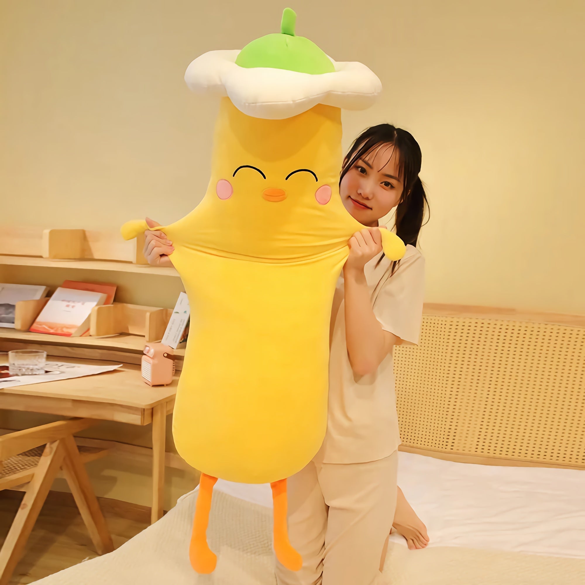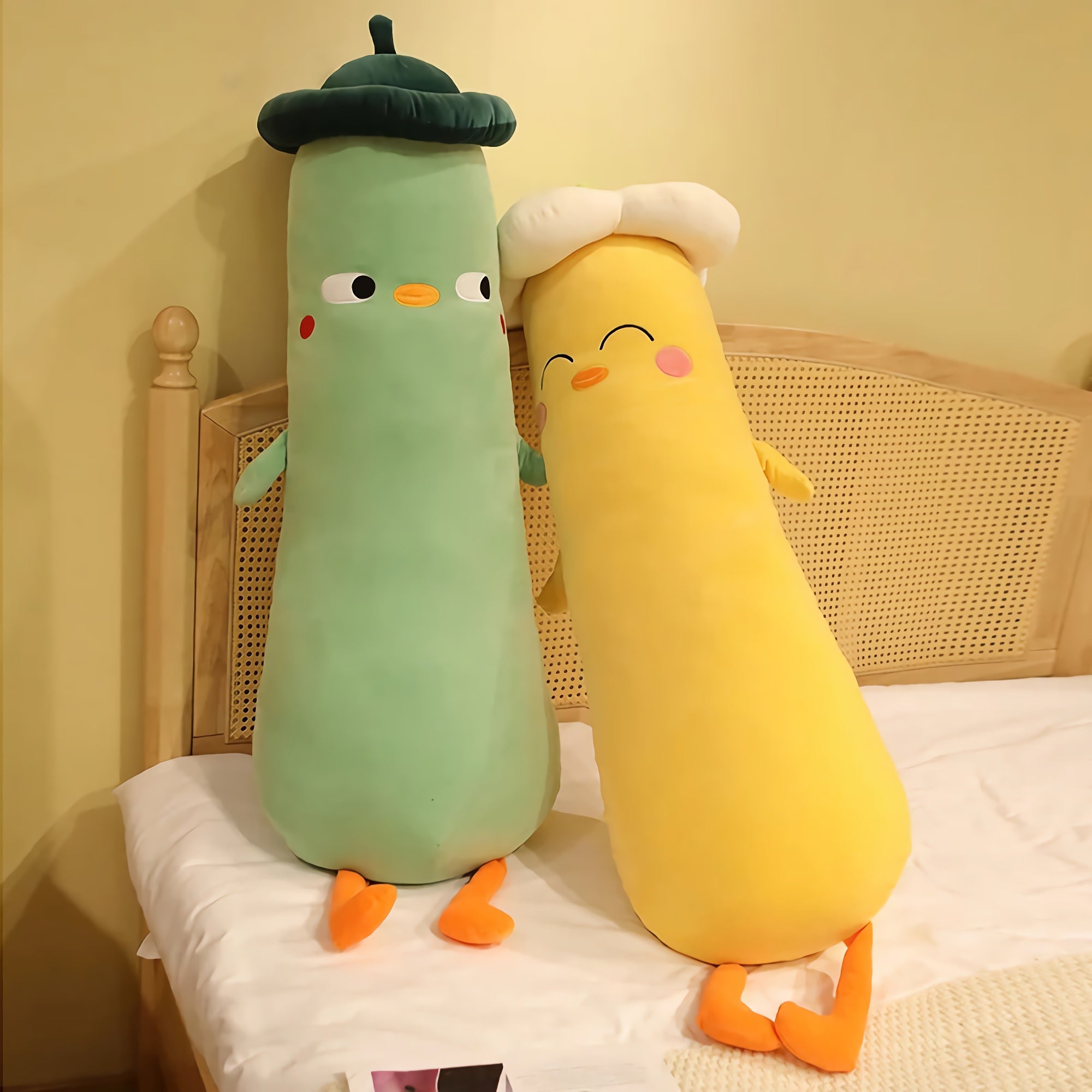 🌱 Meet the Squishy Veggie Ducks, the quirkiest and cuddliest plush companions that bring together the charm of fluffy ducks and the freshness of garden veggies! With their irresistibly soft texture, adorable embroidered faces, and unique veggie-inspired designs, these long plushies are perfect for snuggles, naps, and quirky home decor.