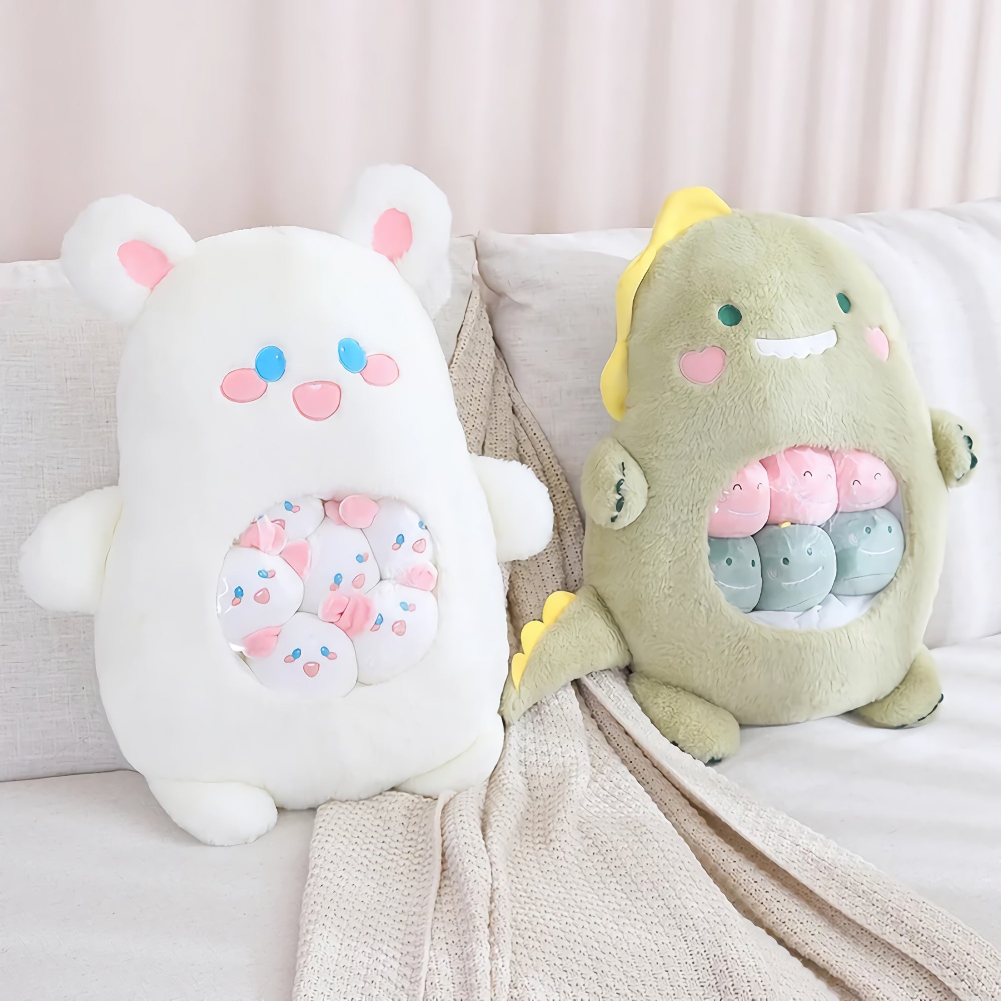 🎁 Whether you're gifting a child, decorating a cozy corner, or looking for a comforting cuddle buddy, these peekaboo plush sets make every moment cuter. With pastel colors, expressive embroidered faces, and a see-through belly pocket, these plush pillows add charm and surprise to your space.