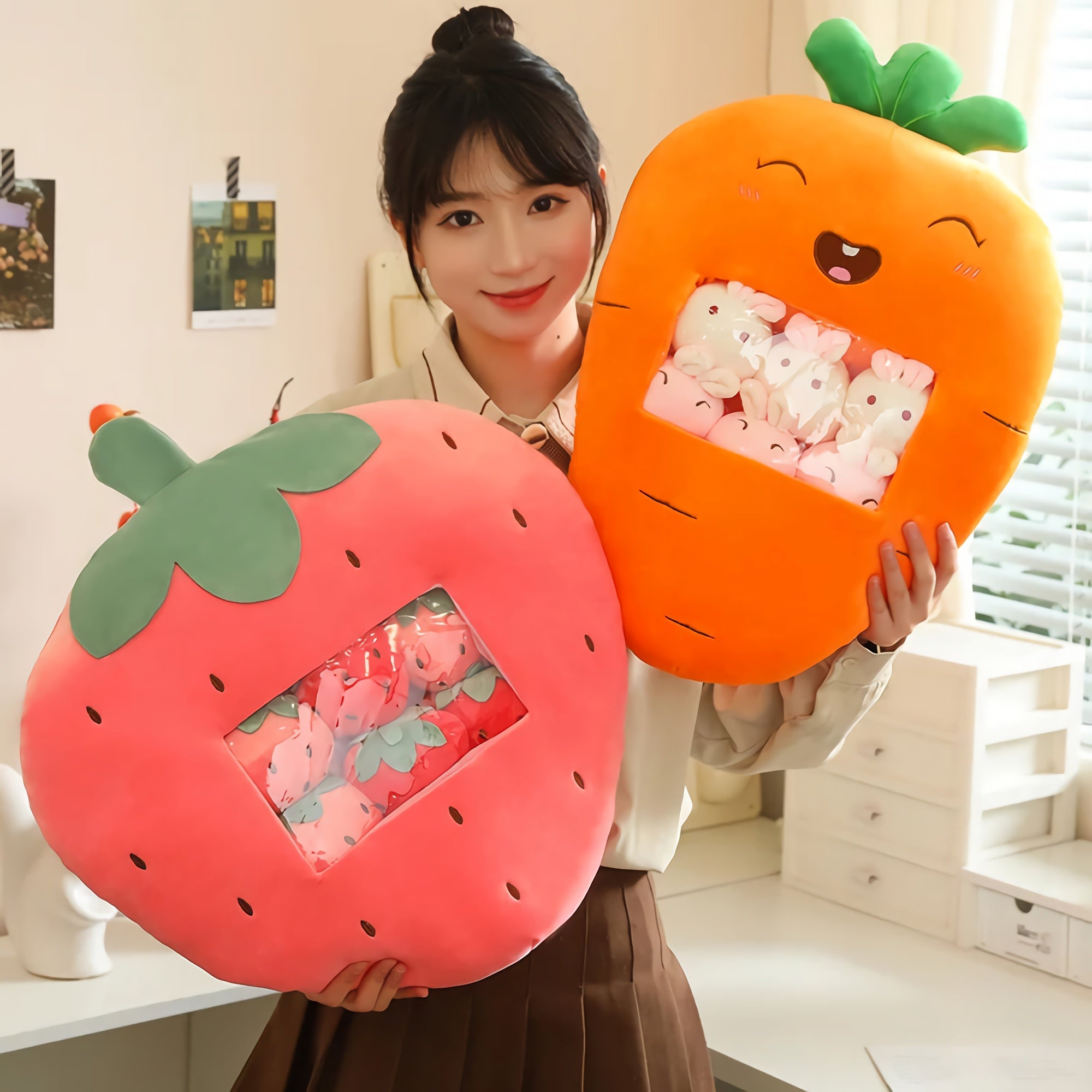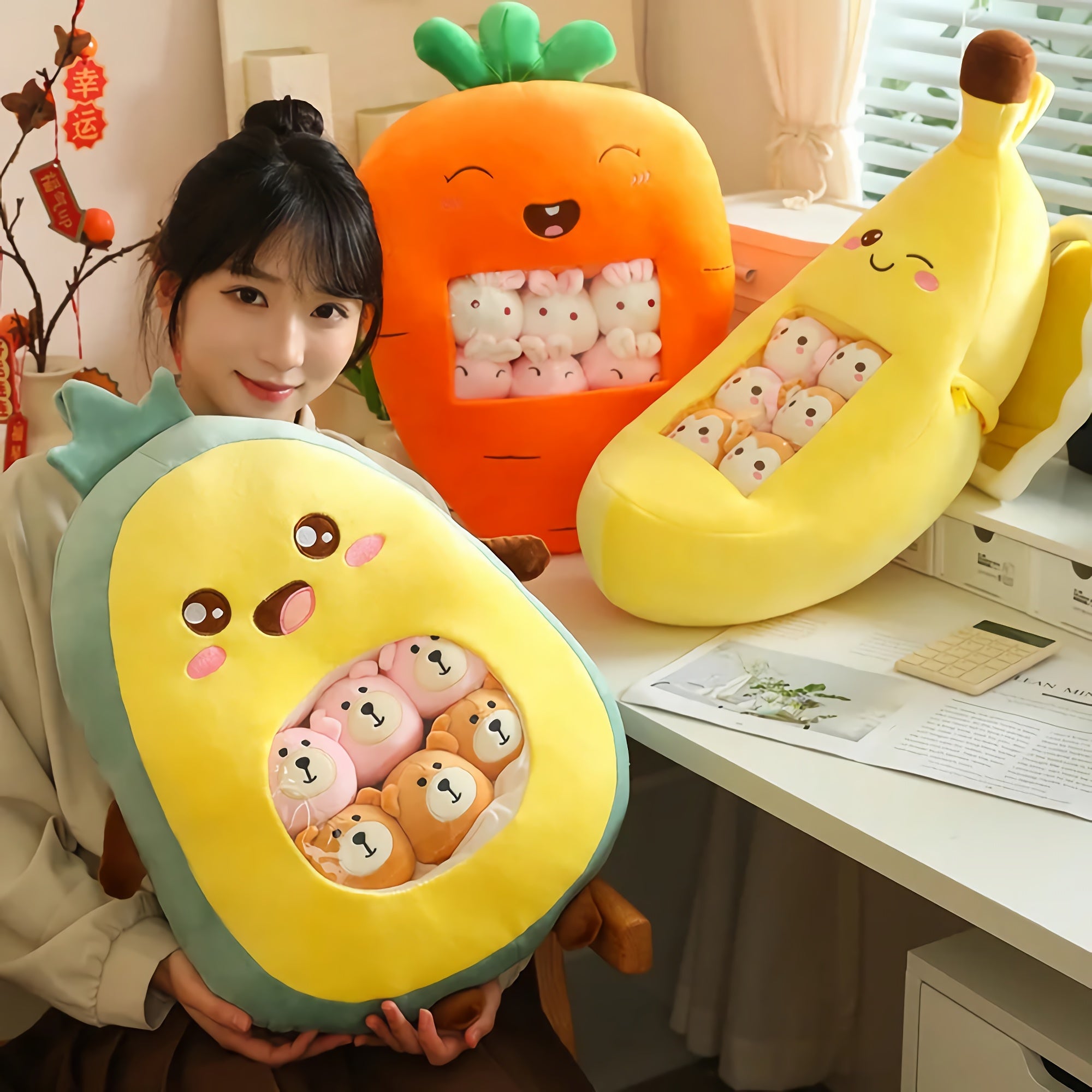 ๐ Fruit-Filled Fun - Each fruit-shaped cushion contains 6 adorable mini plushies for the ultimate surprise!