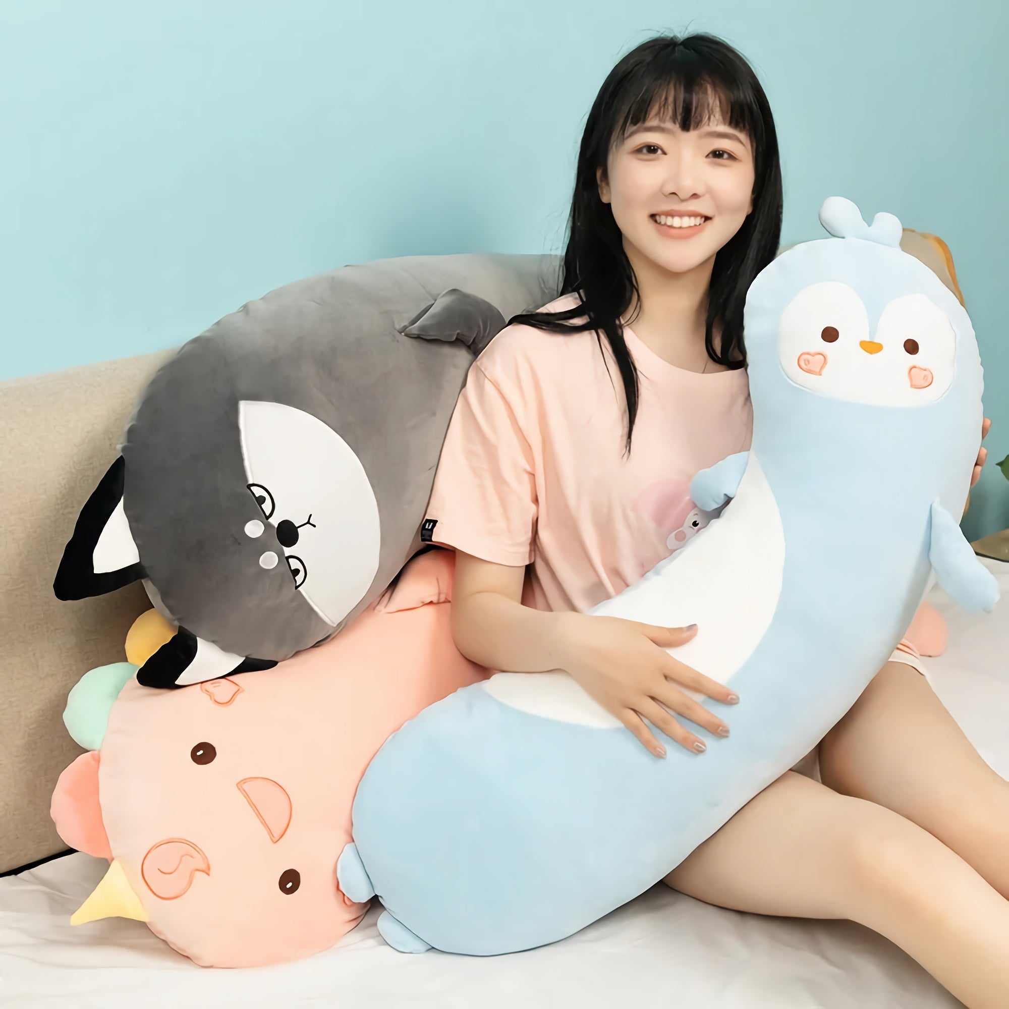 ๐ Available in six charming characters - Unicorn, Pig, Penguin, Dog, Dinosaur, and Chicken - each plush features an irresistibly cute curved design that fits perfectly for hugging, lounging, or even as a pregnancy pillow for extra support.