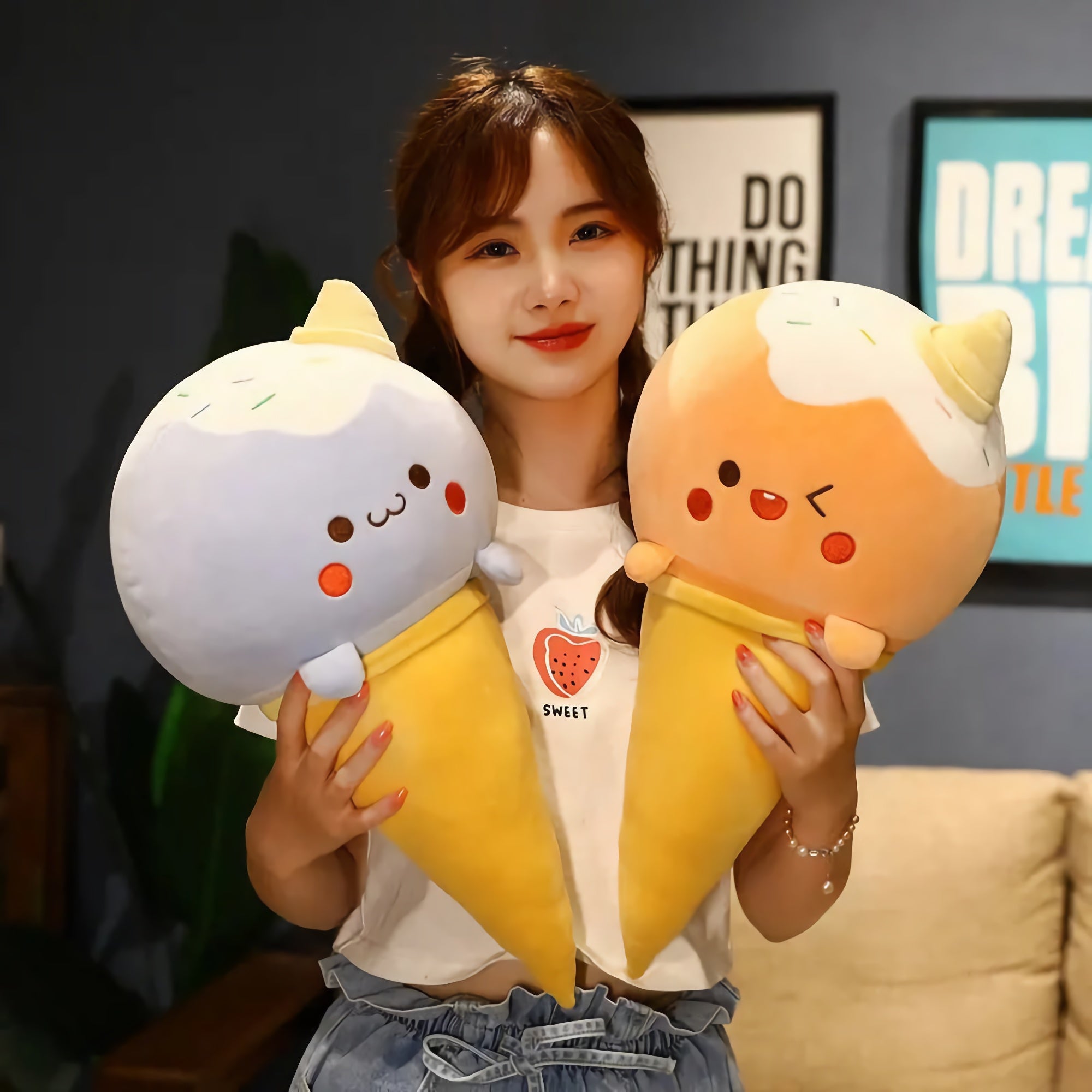 Perfect as sofa pillows, bedtime buddies, or whimsical room decor, these smiling scoops are here to sprinkle joy wherever they land.