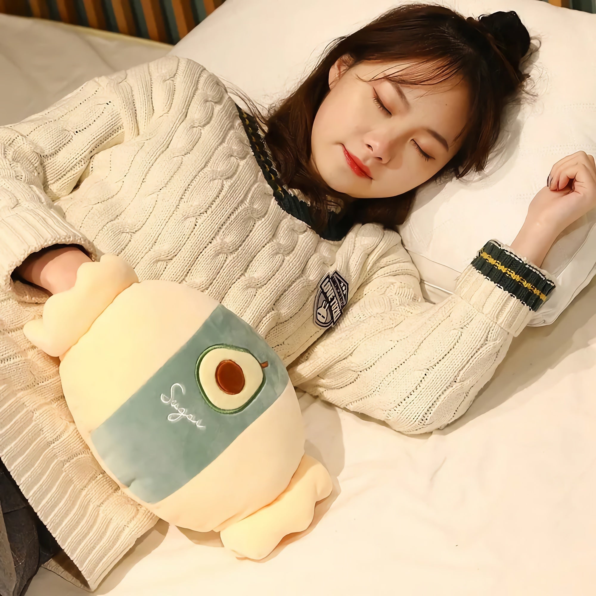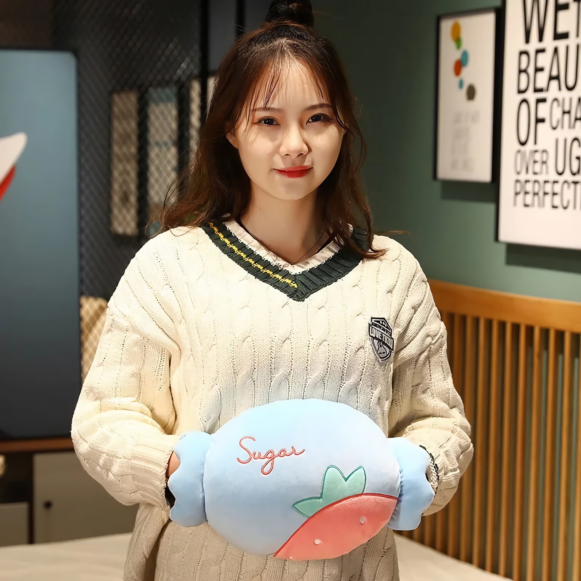 🍬 Meet Snuggle Treats! These adorable candy-shaped plush pillows aren’t just soft and squishy—they double as hand warmers to keep you cozy during chilly days. Designed with fun fruit-inspired patterns like avocado, strawberry, peach, and orange, they’re perfect for snuggling, decorating, or gifting!